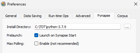 - A new Prelaunch option allows automatic startup of the Pynapse server with Synapse