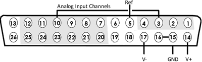 There are 8 (+) channels and 8 (-) channels per DB26 connector. Subsequent banks are indexed by an additional 8 channels.
