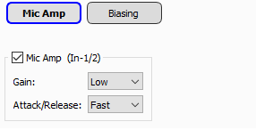 The Mic Amp setting lets you optionally enable the ⅛" jack to use for Inputs 1 and 2. It also adds 56.6 dB, 66.6 dB, or 76.6 dB gain to the input, and set Attack/Release ratios of 1:500, 1:2000, or 1:4000.
