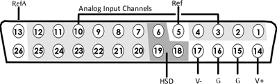 • There are 8 (+) channels and 8 (-) channels per DB26 connector. Subsequent banks are indexed by an additional 8 channels.